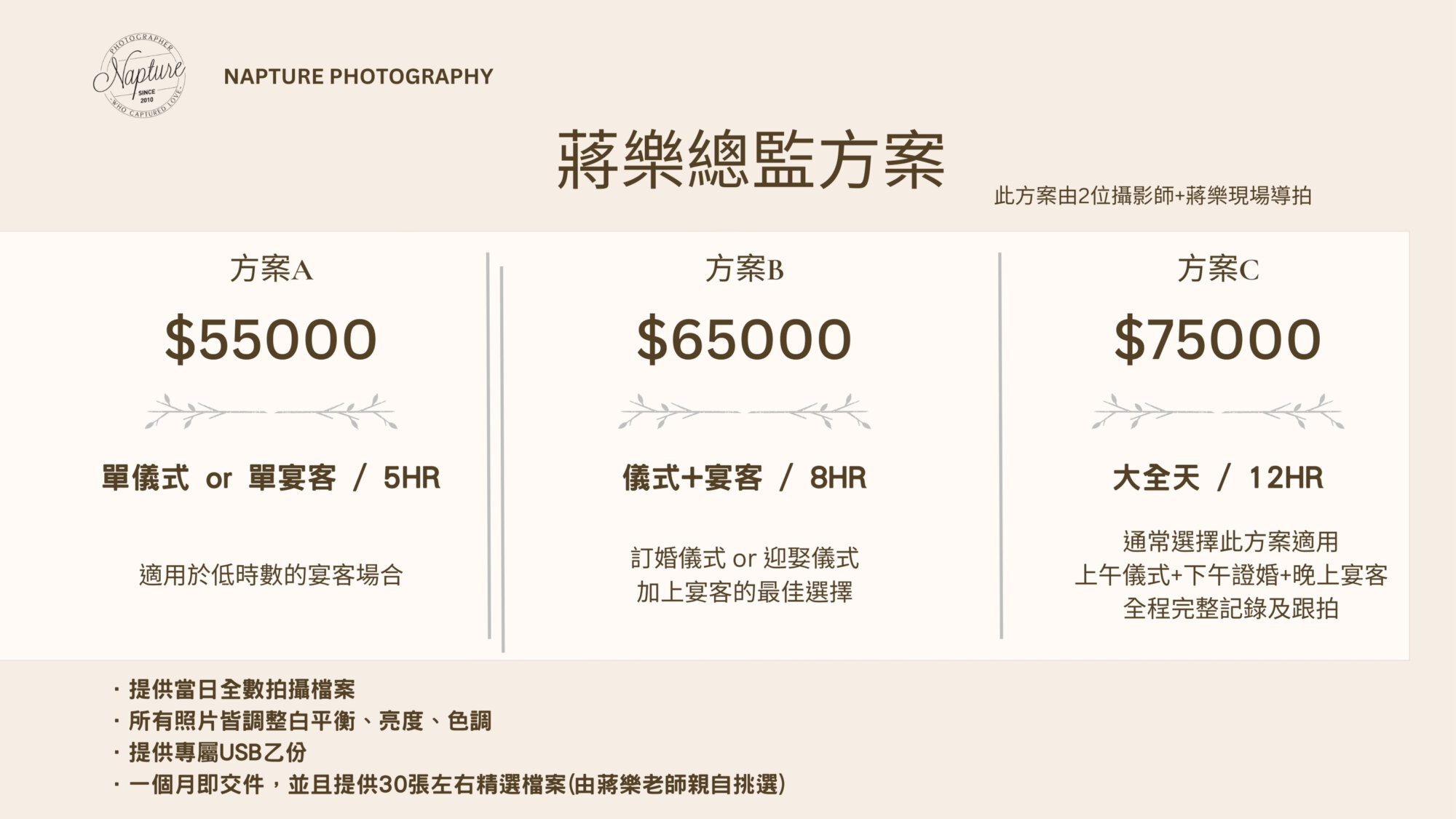2025 蔣樂 為了品質的維護,每月只限接 2場 婚禮記錄 (特殊場地及事件優先)蔣樂 喜歡拍充滿挑戰的婚禮, 如果您覺得您婚禮的拍攝難度很高,歡迎和我們聯絡,我們樂於挑戰。
